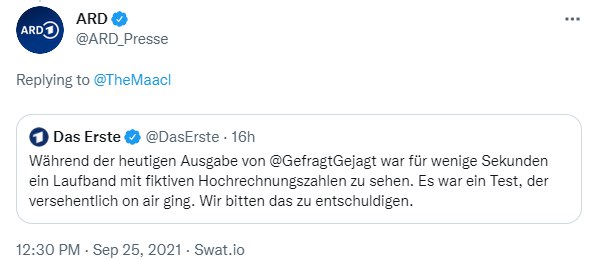 В свою очередь, сам телеканал ARD появление в своем эфире "результатов" еще не начавшихся выборов назвал "тестом".