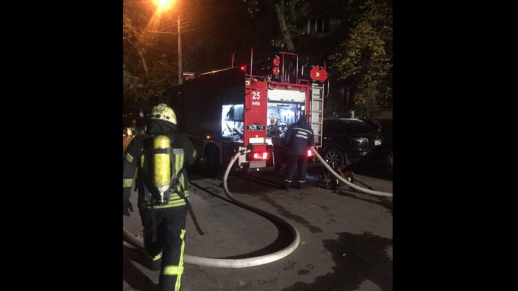 Бойцы ГСЧС на месте пожара, фото facebook.com/DSNSKyiv