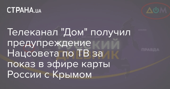 Украинский телеканал "Дом", созданный для жителей неподконтрольных территорий Украины - Донбасса и Крыма, получил предупреждение из-за показа карты РФ с Крымом, которую они использовали в заставке одного из выпусков проекта "Русский дневник" 5 июля.