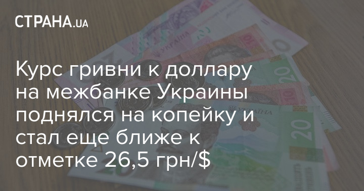 Курс гривни к доллару на межбанке Украины поднялся на копейку и стал еще ближе к отметке 26,5 грн/$