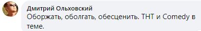 "Оборжать, оболгать, обесценить. ТНТ и Comedy в теме", - написал Дмитрий Ольховский.