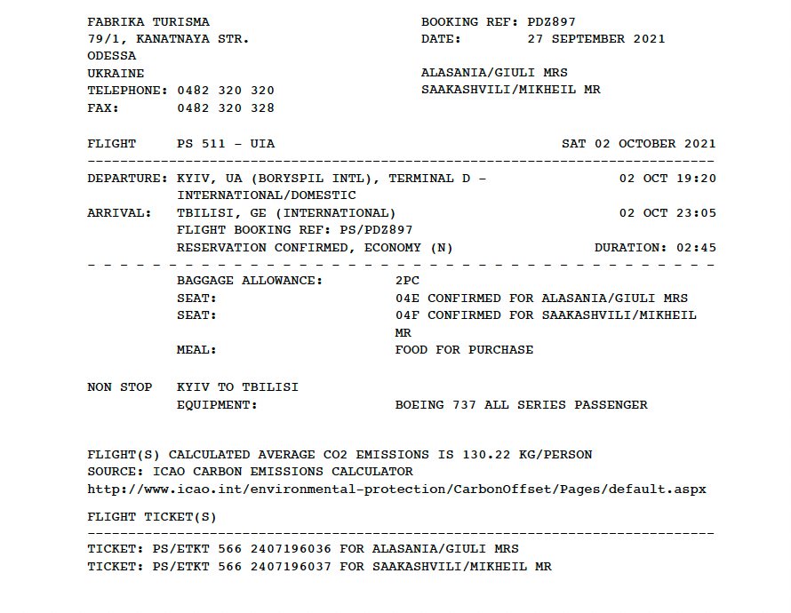 Позже он продемонстрировал авиабилет Киев-Тбилиси на свое имя. Судя по нему он должен был прибыть в столицу Грузии вечером 2 октября.