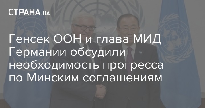 Соблюдение минских соглашений в Украине стало одной из ключевых тем, обсуждаемых на встрече министра иностранных дел Германии Франк-Вальтером Штайнмайером и генерального секретаря ООН Пан Ги Муном.