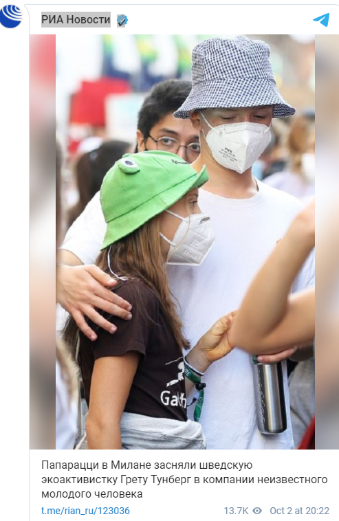 Шведская экоактивистка Грета Тунберг была замечена в компании молодого человека на шествии в защиту климата в Милане.