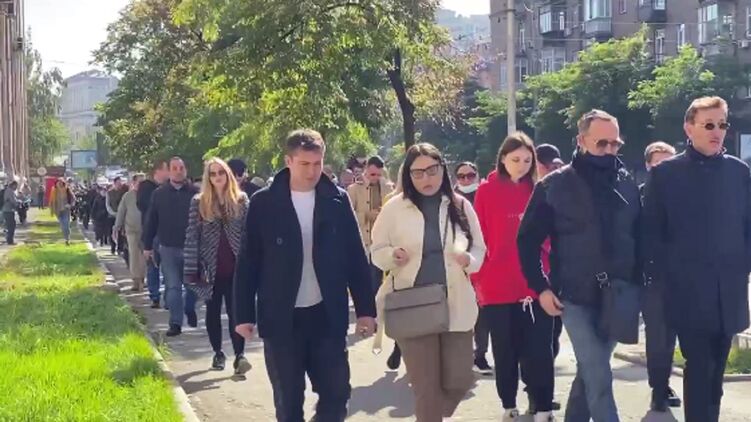 В Киеве сейчас проходит "Марш Памяти Бабий Яр". Сотни людей (многие пришли с детьми - Ред.) идут колонной от кинотеатра "Киевская Русь" к мемориалу Меноры в Бабьем Яру, где будет прочитана поминальная молитва. Именно этим путем 29 и 30 сентября 1941 года прошли киевские евреи, которых немецкие захватчики отправили на уничтожение во время Второй мировой войны.