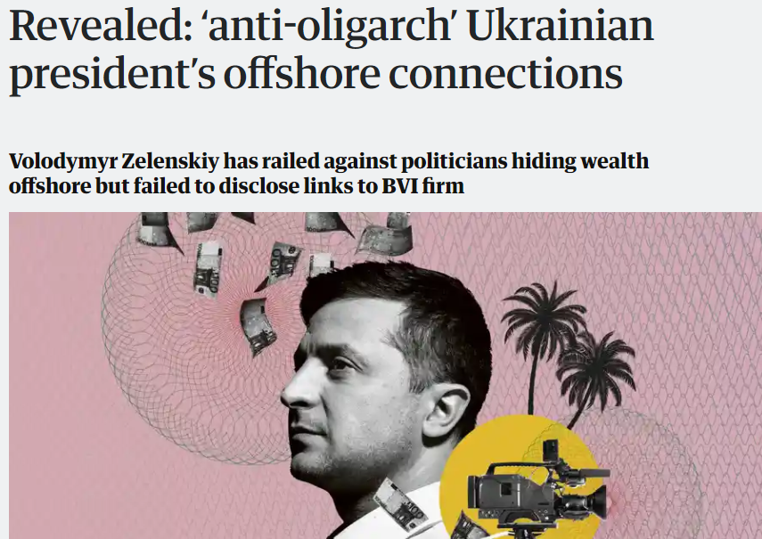 Тональность западных СМИ, которые пишут об аффилированных с Зе офшорами однозначно негативная. Британская The Guardian поместила портрет украинского президента в качестве заглавного фото к материалу о "Пандорагейте" - поставив его выше Владимира Путина и африканских диктаторов.