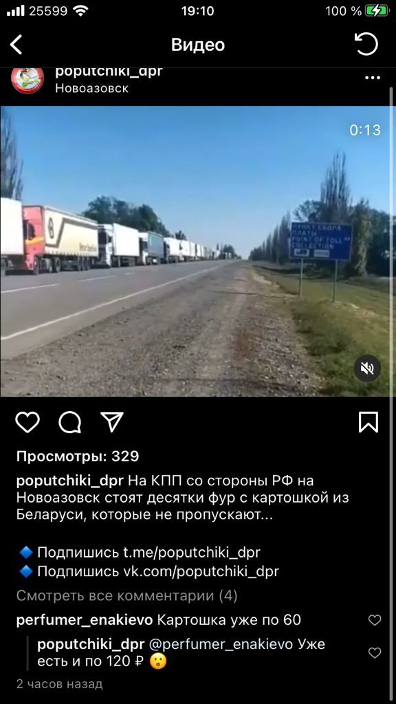 Первая версия, которая озвучивалась в соцсетях - на границе застряли десятки фур с картошкой из Беларуси. Причина - то ли усиленный эпидконтроль, то ли из-за создания общей таможенной зоны "ЛДНР".