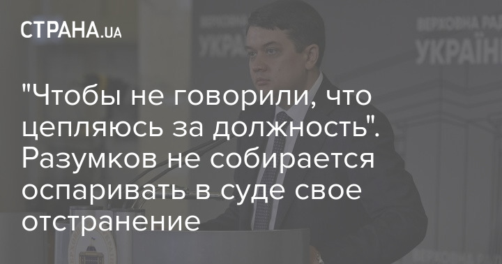 Подавать в суд на незаконное решение я не буду, чтобы потом никто не ходил и не рассказывал, что я держусь за должность. Поверьте, если бы я хотел, то я бы удержался на должности спикера парламента, я знаю как это сделать, но не буду", - заявил Разумков.