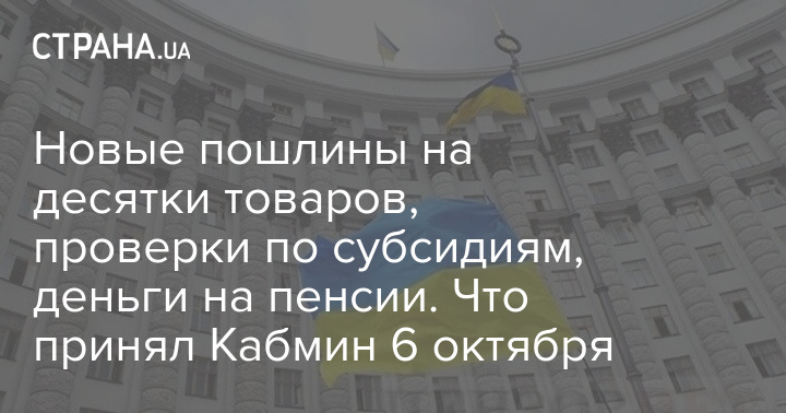 Новые пошлины на десятки товаров, проверки по субсидиям, деньги на пенсии. Что принял Кабмин 6 октября