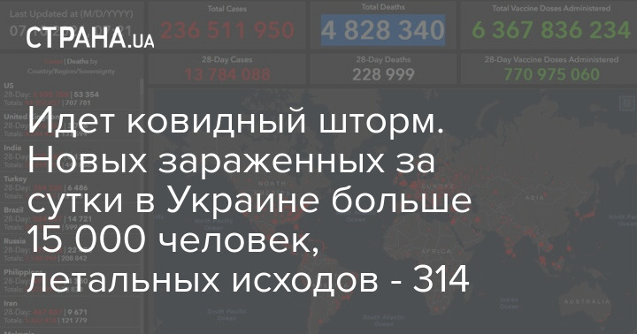 По данным авторитетного университета имени Хопкинса на утро четверга (данные на 07.55 - Ред.) на Земле отмечено уже 236 511 950 зараженных с начала пандемии. А умерли за этот же период уже 4 828 340 человек.