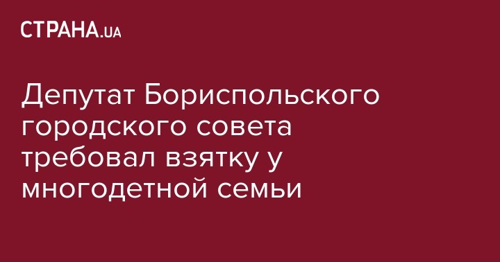 Правоохранители задержали депутата Бориспольского городского совета Киевской области, который требовал и получил у граждан деньги в сумме $3 тыс. за влияние на своих коллег-депутатов во время голосования за выделение в частную собственность земельного участка для строительства и обслуживания жилого дома этим гражданам.