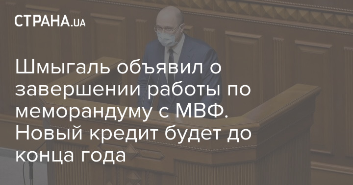 Шмыгаль объявил о завершении работы по меморандуму с МВФ. Новый кредит будет до конца года
