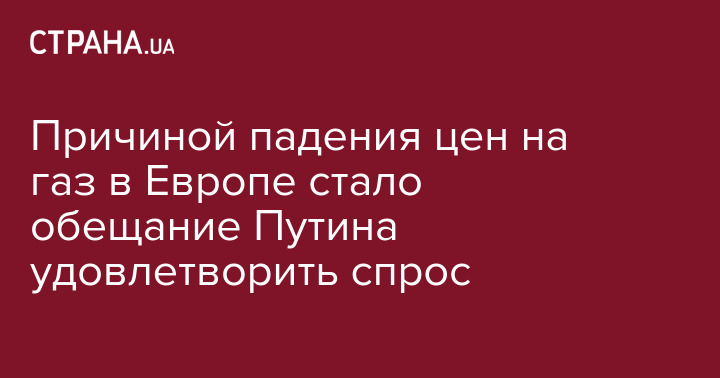 Причиной падения цен на газ в Европе стало обещание Путина удовлетворить спрос