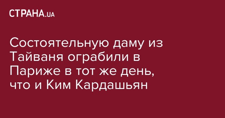 Состоятельную женщину Шаулан Ван из Тайваня ограбили в Париже тот же день, что и шоу-звезду Ким Кардашьян. У тайванки грабители также украли ювелирные драгоценности.