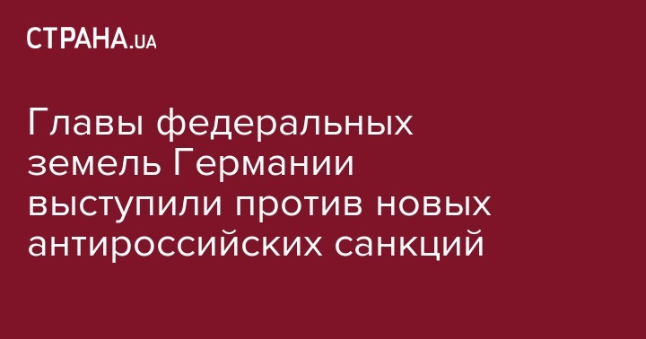 Во вторник, 11 октября премьер-министры трех федеральных земель Германии (ФРГ) совместно выступили против введения новых антироссийских санкций. Разговоры об этом возникли из-за ситуации в Сирии. Немецкие лидеры назвали действующие санкции против России - контрпродуктивными, сообщает DW.
