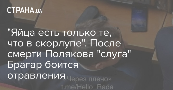 В Сети появились фото переписки отметившегося в нескольких скандалах нардепа от "Слуги народа" Евгения Брагара, в которой речь идет о том, как уберечься от отравления. Вероятно, после шокирующей истории с внезапной гибелью нардепа Антона Полякова некоторые народные избранники почувствовали необходимость подстраховать свою безопасность.