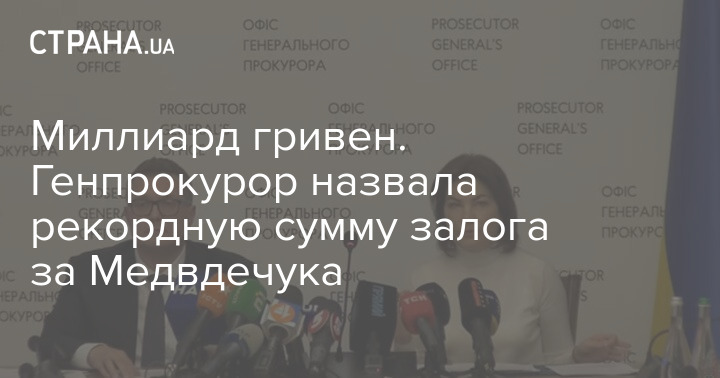 По словам главы ведомства, прокуратура будет требовать взять Медведчука под стражу за приобретение угля у "республик" Донбасса под залог в астрономическую сумму - один миллиард гривен. Это, пожалуй, рекордный размер залога за всю историю  независимой Украины.