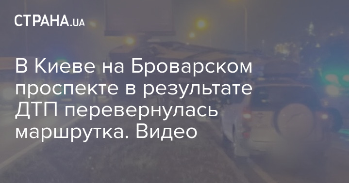 В Киеве на Броварском проспекте столкнулись маршрутка и легковой автомобиль. От удара автобус перевернулся.