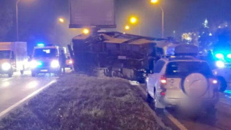 В Киеве перевернулась маршрутка после столкновения с легковой машиной. Фото: Киев Оперативный