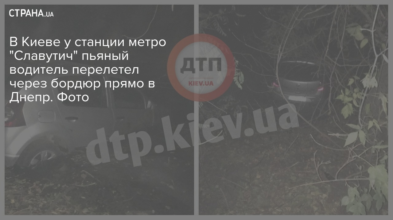 В Киеве у станции метро "Славутич" пьяный водитель перелетел через бордюр прямо в Днепр. Фото