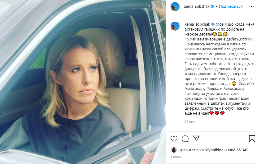 Во всех случаях, Собчак вела себя так, как будто правила написаны не для нее. Так, в посте от 1 июля этого года она разместила свое фото за рулем.