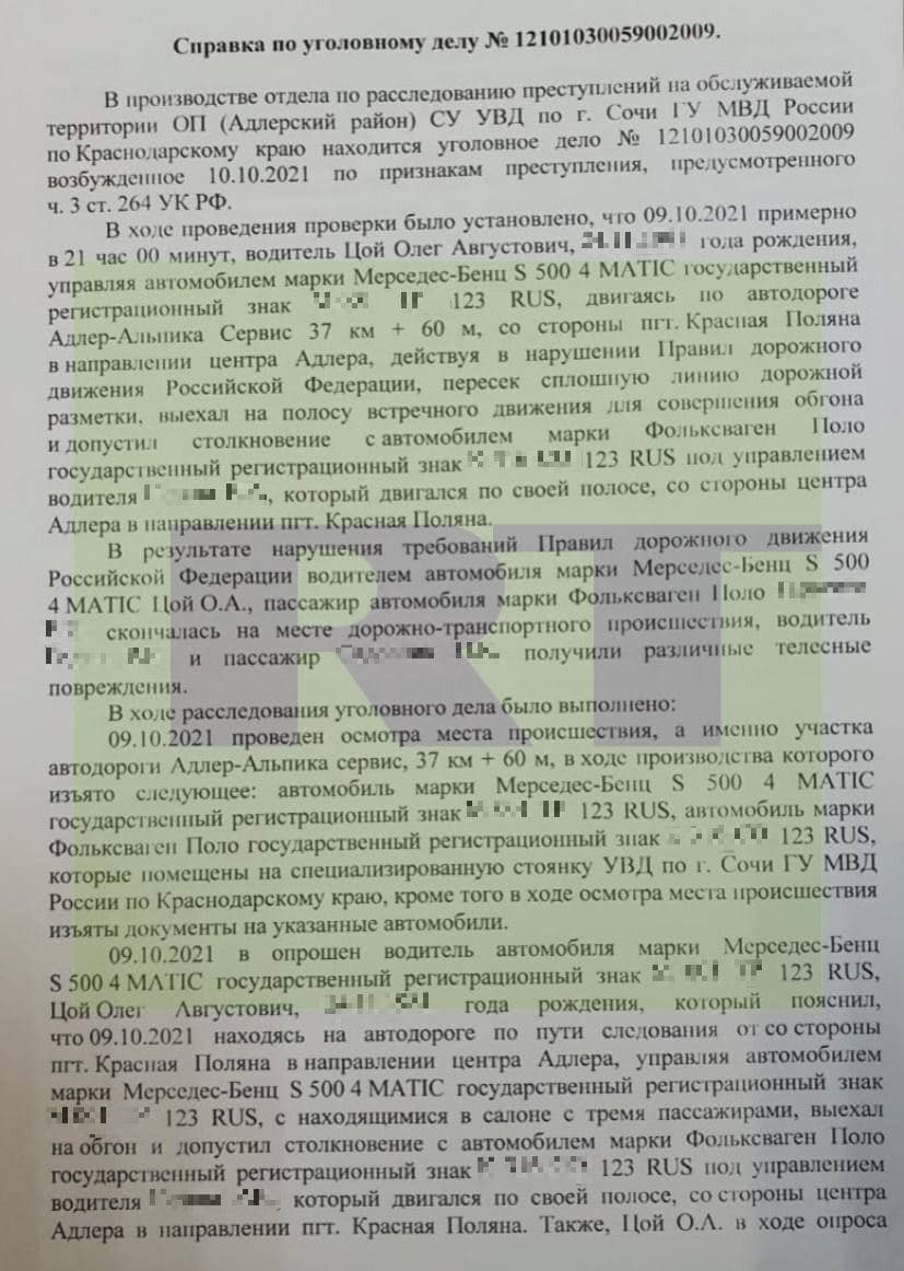 Водитель Олег Цой, находившийся за рулем Mercedes