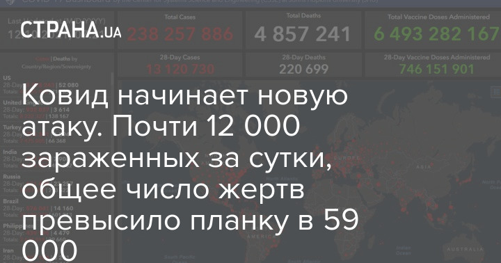 Университет Джона Хопкинса также привел печальную статистику на утро 12 октября. С начала пандемии на планете уже 238 257 886 человек заразились СOVID-19.
