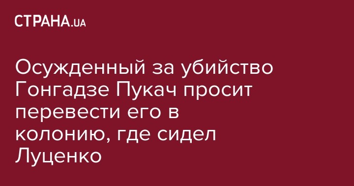 Бывший глава департамента внешнего наблюдения МВД Алексей Пукач, который был осужден за убийство журналиста Георгия Гонгадзе, обратился к суду с просьбой перевести его в Менскую колонию для экс-правоохранителей  в Черниговской области. Об этом сообщают Украинские Новости.