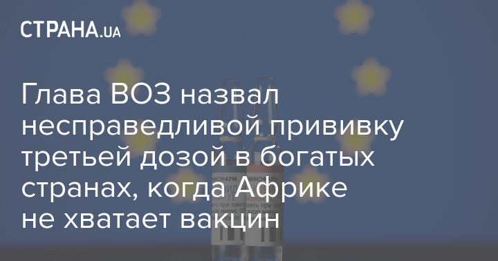 Глава Всемирной организации здравоохранения (ВОЗ) Тедрос Адханом Гебрейесус потребовал остановить ревакцинацию от коронавируса в богатых странах и назвал ее "аморальной".