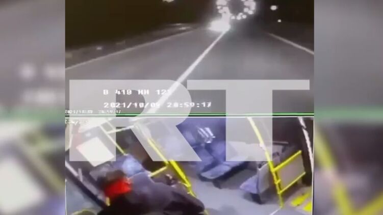 На кадрах видно, как Mercedes едет на большой скорости и влетает в другой легковой автомобиль. Кроме того, момент смертельного ДТП был заснят на камеры, расположенные внутри автобуса. Судя по всему, автобус задело по касательной, в салоне оторвало поручень. Судя по кадрам, пассажиры не пострадали.