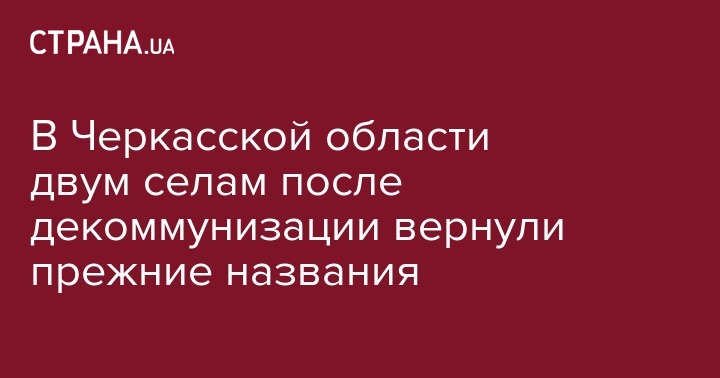 В Черкасской области два села, переименованные в рамках декоммунизации, получили прежние названия в связи с массовым недовольством местного населения. Об этом сообщает "УНИАН".