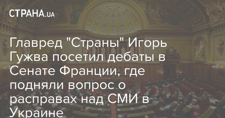 Главный редактор "Страны" Игорь Гужва в среду 13 октября посетил дебаты в Сенате Франции, на которых выступила сенатор Натали Гуле, которая подняла тему внесудебных расправ над СМИ в Украине, в том числе санкций СНБО против "Страны".
