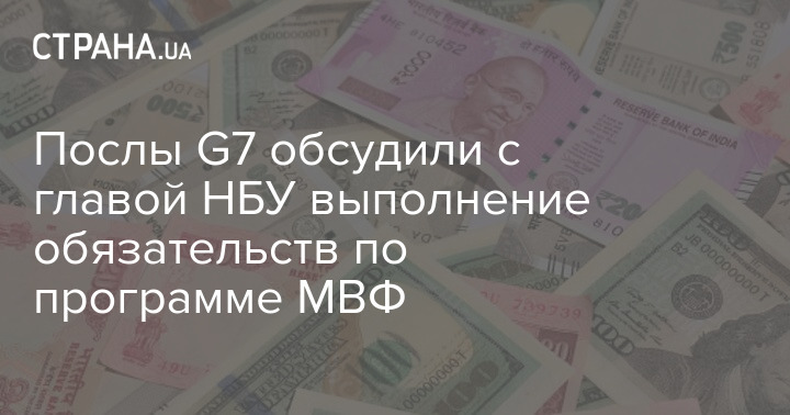 "Послы G7 во время встречи с председателем Национального банка Украины Шевченко услышали об усилиях НБУ по обеспечению выполнения обязательств в соответствии с программой МВФ и планы относительно продолжения реформы банковского сектора", - говорится в сообщении.