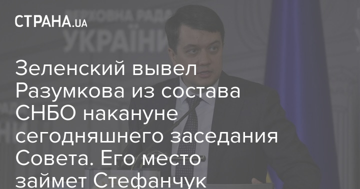 Накануне заседания Совета национальной безопасности и обороны (СНБО), которое состоится вечером в пятницу, 15 октября, президент Владимир Зеленский вывел бывшего спикера Рады Дмитрия Разумкова из состава СНБО. Его место в СНБО займет действующий глава парламента Руслан Стефанчук.