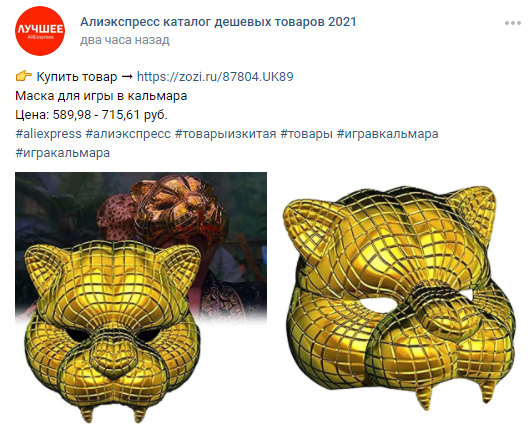 Специалисты выяснили, что интерес пользователей платформы к этим тематическим товарам вырос на 233% с 4 по 10 октября за предыдущую неделю. Во всех запросах фигурировали слова "Игра в кальмара".