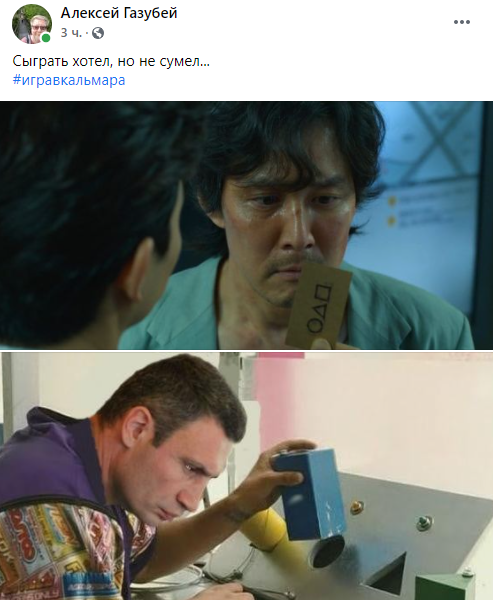 В соцсети появились мемы о том, как мэр Киева Виталий Кличко хотел сыграть в "Кальмара", но не сумел.