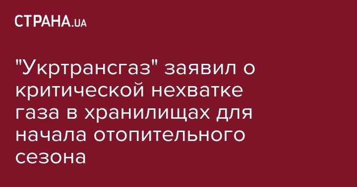 "Укртрансгаз" заявил о критической нехватке газа в хранилищах для начала отопительного сезона