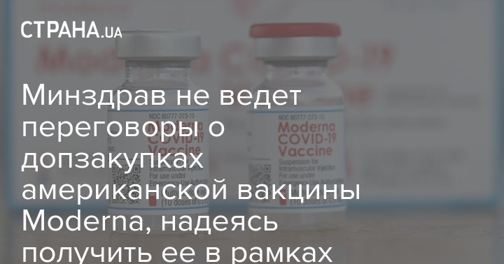 Министерство здравоохранения Украины, которое разрешило комбинировать в Украине вакцины Moderna и Pfizer, не ведет переговоры о дозакупке ковидной вакцины Moderna, но надеется на дополнительные поставки этой вакцины в рамках программы COVAX.