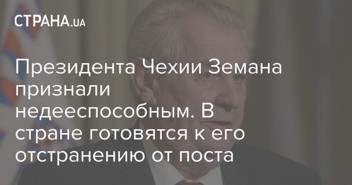 В Чехии врачи объявили о недееспособности действующего президента Чехии Милоша Земана. Глава Сената Чехии Милош Выстрчил объявил, что инициирует рассмотрение парламентом страны статьи 66 Конституции, которая разрешает отстранять президента от должности в случае его тяжелой болезни.