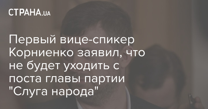 Новоиспечённый первый вице-спикер Верховной Рады Александр Корниенко в ходе брифинга в парламенте заявил, что не собирается уходить с поста главы партии "Слуга народа" в связи с избранием первым вице-спикером.
