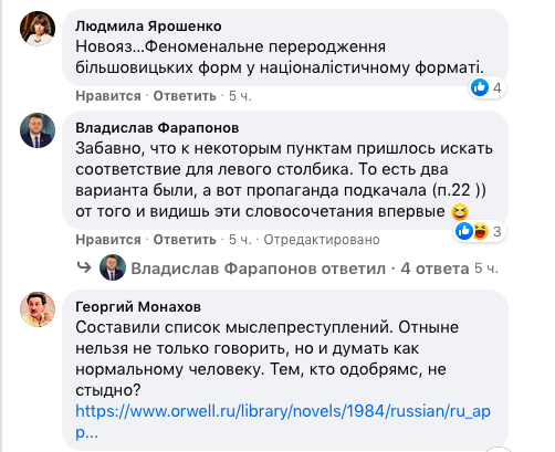 В соцсетях отреагировали на этот глоссарий. Журналист Николай Капитоненко написал: