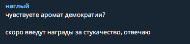 "Чувствуете аромат демократии? скоро введут награды за стукачество, отвечаю", - считает журналист Макс Назаров.
