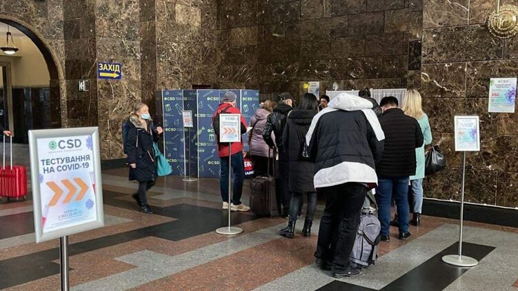 Сделать экспресс-тест на коронавирус можно прямо на вокзале. Фото: t.me/UkrzalInfo