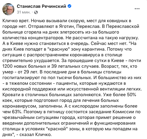 Журналист Станислав Речинский описывает случай: ночью вызывали скорую, но ковидных мест городе нет.