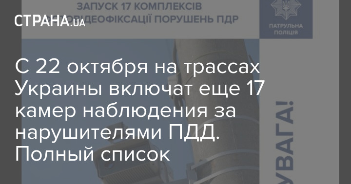 С 22 октября на трассах Украины включат еще 17 камер наблюдения за нарушителями ПДД. Полный список