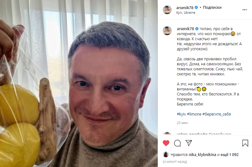 Экс-глава МВД Украины Арсен Аваков подтвердил в своем Instagram, что заболел коронавирусом. Он акцентировал на том, что его состояние не тяжелое, чтобы перебить прошедший слух:
