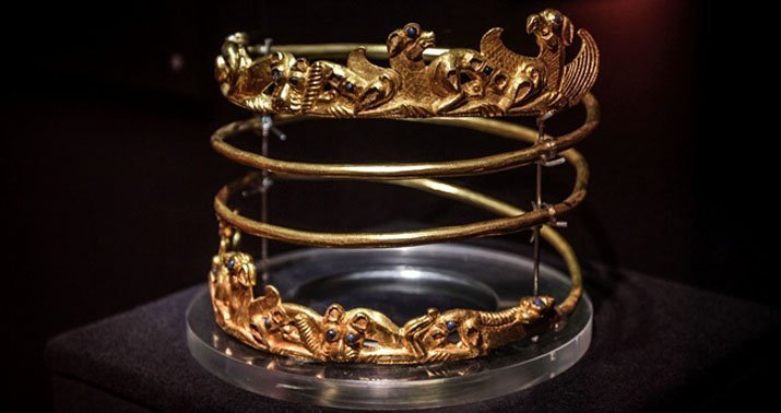 Среди украшений, например, была золотая гривна, которую носили на шее. Ее украшают фигурки грифонов.