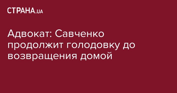 Адвокат: Савченко продолжит голодовку до возвращения домой