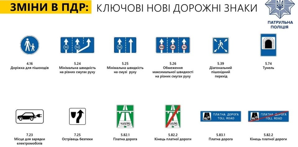 Появятся новые дорожные знаки. Среди них - диагональный пешеходный переход, начало и конец платной дороги, остров безопасности и другие.