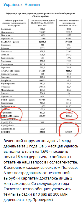 Пять месяцев прошло со дня заявления президента Украины Владимира Зеленского о планах высадить в Украине миллиард деревьев в ближайшие три года. Такое заявление он сделал 7 июня на форуме "Украина 30".